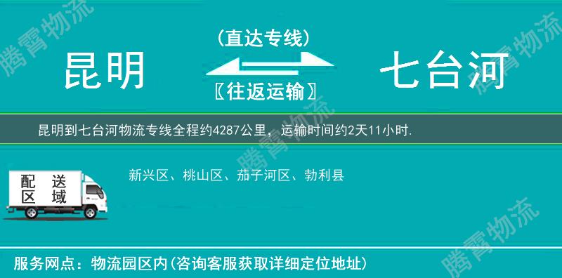 歡迎來(lái)電咨詢昆明到七臺(tái)河物流專線相關(guān)信息,天天發(fā)貨,全程3-7天可將您的貨物送至七臺(tái)河全市:桃山區(qū)、新興區(qū)、勃利縣、茄子河區(qū)、。