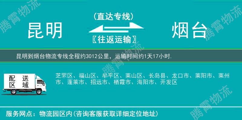 ★ 本站所列昆明到煙臺物流專線費用與時效僅供參考,如需詳細了解收費標(biāo)準(zhǔn)請電話咨詢。